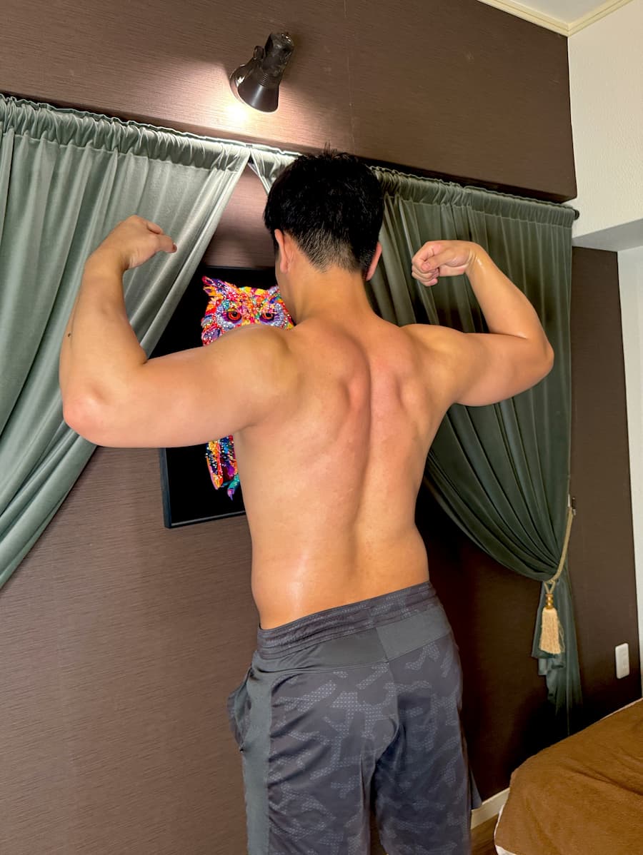 緊張をほぐした後シャワーを浴び、背面中心のオイル施術をおこないます。